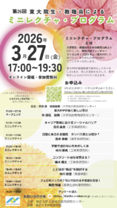 【3月27日(金)オンライン開催】 第26回 東大院生・教職員によるミニレクチャプログラム