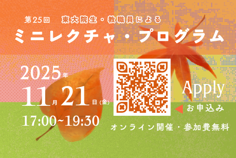 【11月21日(金)オンライン開催】 第25回 東大院生・教職員によるミニレクチャプログラム